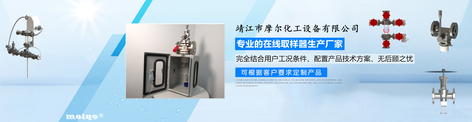 靖江市摩爾化工設備有限公司位于蘇中明珠——江蘇省靖江市城南工業園區東進路北側天元艾爾瑞內,另有生產基地位于靖江市經濟技術開發區新號路1號鼎電科技園內。我公司由數名長期從事化工生產、氟塑襯里模具開發以及機械自控設備的專業人員共同合作成立,致力于提供客戶最優的高效在線取樣、反應及精餾分離設備,為客戶提供合理的設備選型方案,以幫助客戶提高綜合生產效率以及改善生產現場環境為目標。 本公司主要制造及銷售的產品有:釜用在線取樣裝置,管道取樣閥,釜用清洗噴淋裝置、搪玻璃設備、GMP專用搪玻璃設備、氟塑襯里設備、攪拌器、釜用機械密封、氣動閥門及搪玻璃管道、襯氟閥門管道、非標不銹鋼容器,精餾塔塔器、片式冷凝器及PTFE密封件、鋯、鈦、鉭、鎳等加工件制品。我司是一家集研發銷售、設計咨詢服務于一體的專業···| 青龙 | 云龙县 | 都江堰市 | 阜新 | 济南市 | 烟台市 |